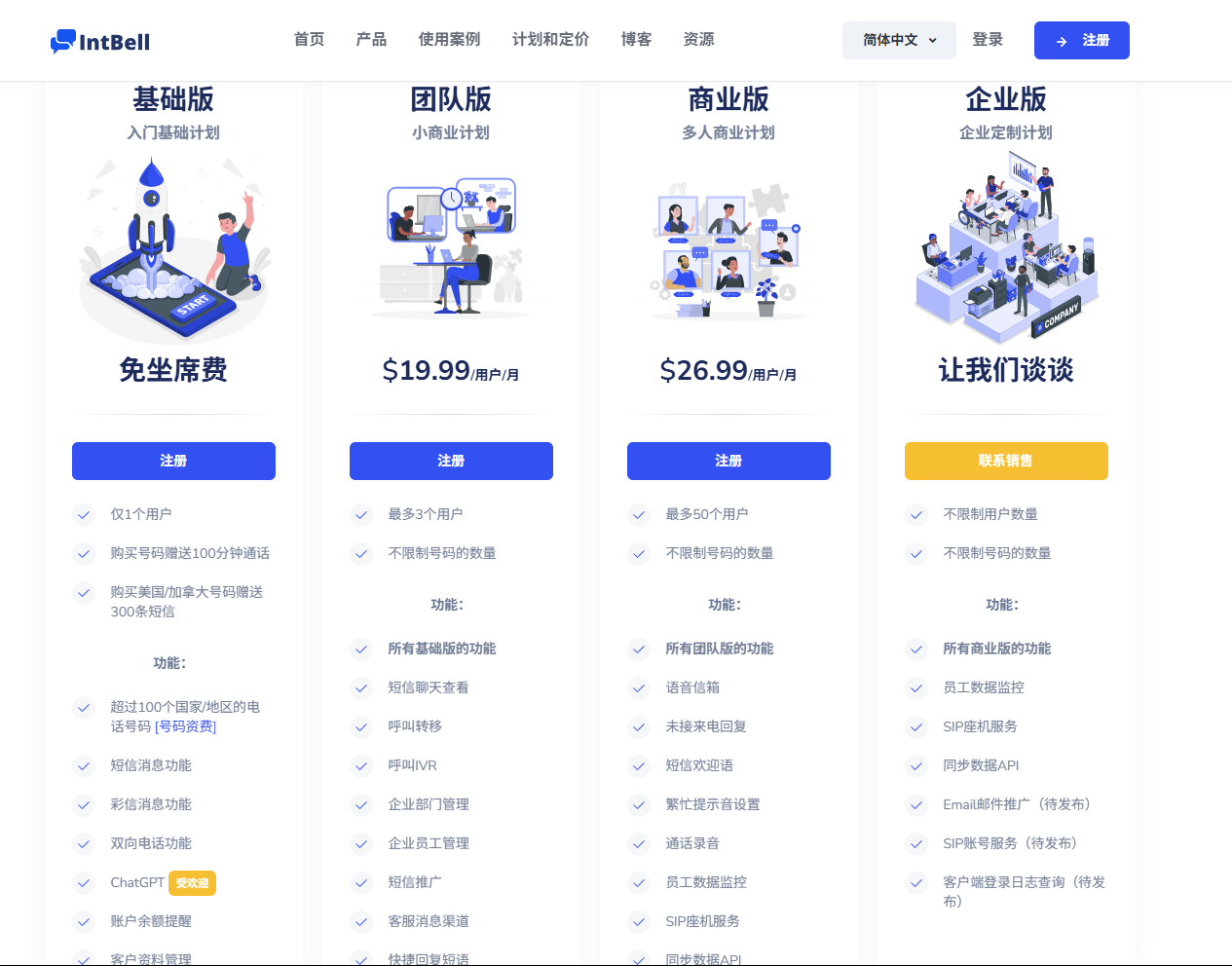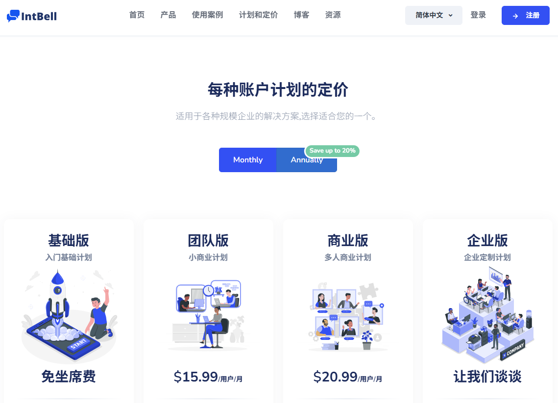 IntBell年付计划的优势显而易见:选择年度预付方式,即刻享受总费用20%的折扣优惠。这一优惠政策适用于全系列套餐,让各类规模的企业都能受益。